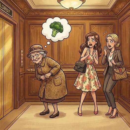 Then another young and beautiful woman gets on the elevator and also looks very arrogantly at the old woman, who says, “Chanel No. 5, $200 an ounce!”