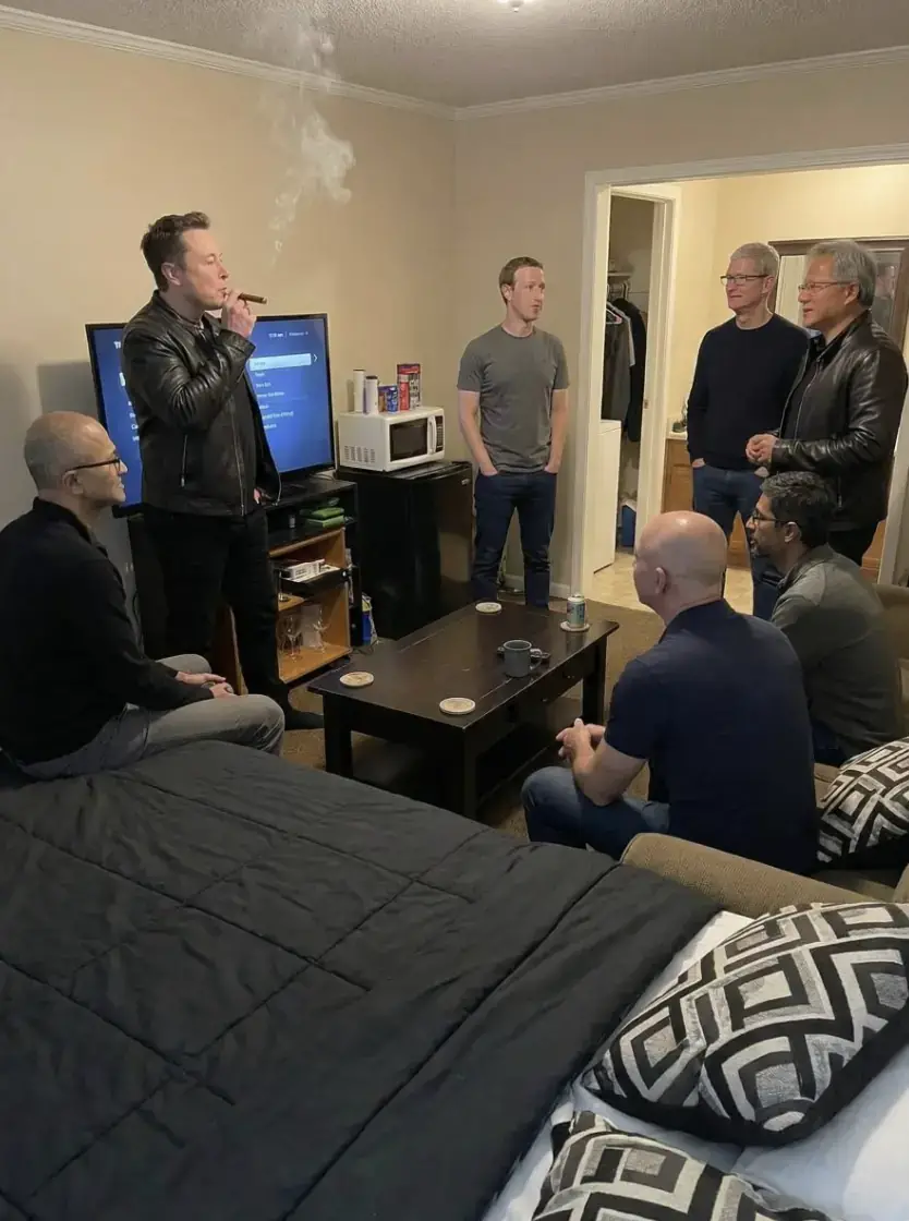 Social-media users noted the uncanny nature of the scene, writing that the setting looks more like a budget motel hang-out than a meeting of technology titans. One version carried the caption: “Just a chill gathering with the homies.” The realism of the image—down to lighting, smoke effects, and body posture—spurred debate about its authenticity and led to widespread sharing, memes and comment-threads about the power and mystique of the technology elite.